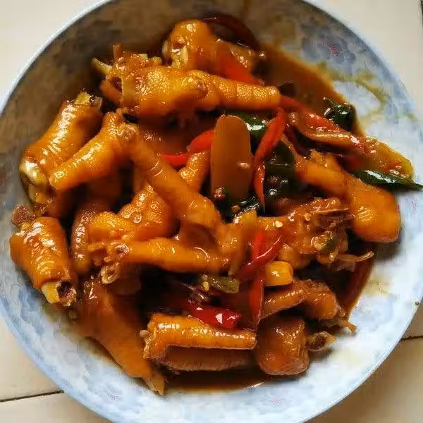 用料:雞爪750g、花椒一小把、八角兩個、桂皮兩小片、香葉兩小片、冰糖10g、料酒一湯匙、老抽三湯匙、生抽兩湯匙、十三香半茶匙、姜兩片