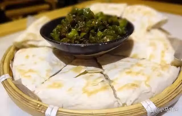 1.先來和面制餅,盆中加入適量麵粉,一斤麵粉5克酵母粉,冬季加入適量不燙手的溫水,揉成偏硬一點的麵糰,蓋住鬆弛十分鐘,再揉至光滑,蓋住醒發2小時以上,醒好的面放在案板上,擀成大約三四厘米厚的大圓餅,用扦子在餅胚上紮上數個小眼,放入提前預熱的平底鍋中,小火慢㸆,㸆至兩面金黃,表皮酥脆,大約20分鐘左右即熟,出鍋改刀裝盤備用。
