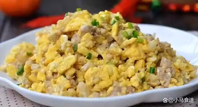 2.起鍋燒油,下入肉末煸炒出油,下入蔥白末爆香,烹入少許料酒、少許鹽、少許胡椒粉,煸炒入味,淋入打散的蛋液,將雞蛋炒熟,撒入蔥花,即可出鍋裝盤。