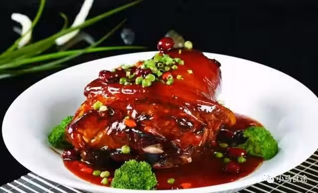 4. 燒開打去浮沫,大火燒至豬蹄上色,改小火燉爛,火候足時自然美,收汁濃稠,即可出鍋裝盤。