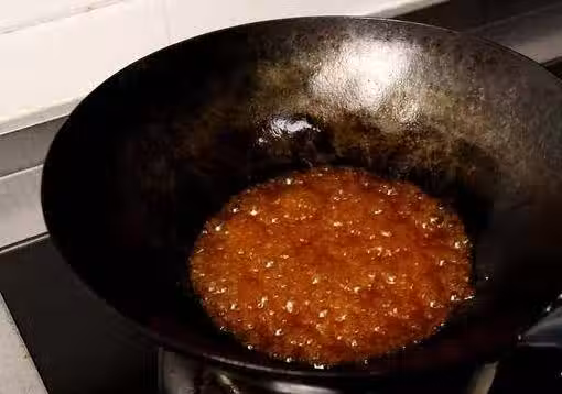 5、另起一鍋,鍋中倒入少量的油,放入適量番茄醬,炒化後放入2勺白糖,2勺白醋,糖醋比例是1:1,也可以根據自己口味適量增減。然後加適量清水,等大泡變小泡後再加入適量水澱粉勾芡一下。