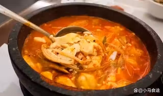 1.石鍋中倒入清水煮開,放入適量白菜絲,煮到透明,調入韓國辣醬,放入豆腐和金針菇,開鍋2分鐘,放入果蔬調味粉,美味即成,就這麼簡單。