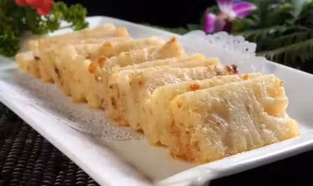 蘿蔔糕,閩粵傳統名小吃,其中腊味蘿蔔糕更有風味,更具有代表性。白蘿蔔經過擦絲處理,佐以調味,加入粘粉,拌勻,上鍋蒸製,再改刀煎至兩面金黃酥脆,擺盤上桌,一道簡易版的蘿蔔糕就做好了,軟糯可口,外焦里嫩,沒吃過的朋友可以試試,說不定你會喜歡上它。