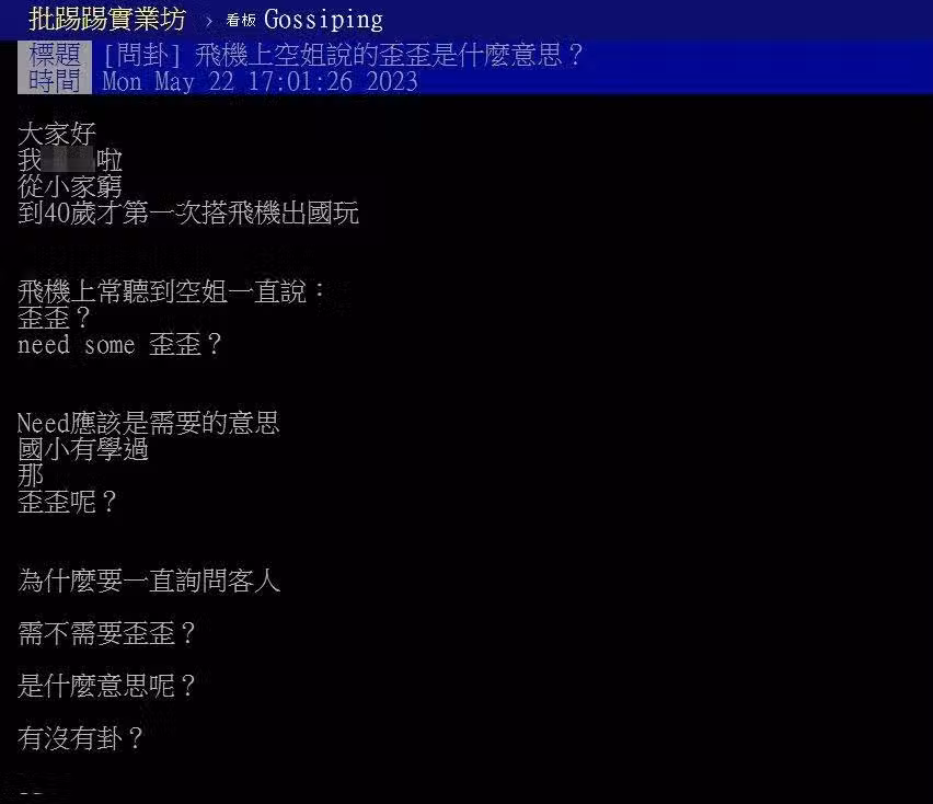 空姐一直問乘客「要歪歪嗎?」 他初次搭機聽不懂!過來人全笑了