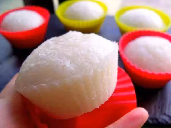 粘米粉,水和白砂糖混合均勻,放進微波爐叮一叮,每半分鐘拿出來,直到裡面出現結團的現象,此步驟比傳統方法製作生熟漿更加簡單