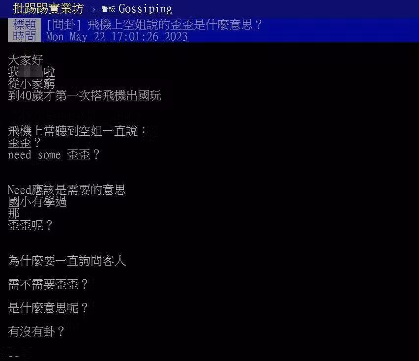 空姐一直問乘客「要歪歪嗎?」他初次搭機聽不懂?!過來人全笑了