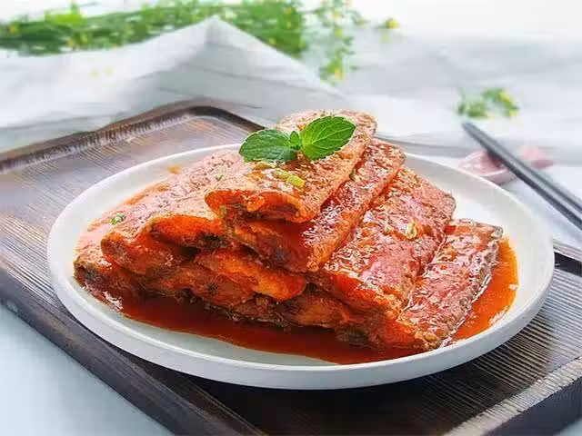 2、帶魚切塊,裹上麵粉3、炒鍋燒熱注入油,燒六七分熱,放入帶魚煎炸4、煎炸過程中注意勤翻面,煎炸微黃撈出,再第二次煎炸,炸制香脆為止撈出5、另起一鍋注入少許油,倒入番茄漿倒入鍋中加1勺白糖1勺鹽翻炒熬制濃稠6、倒入帶魚裹勻即可關火燜香辣蟹