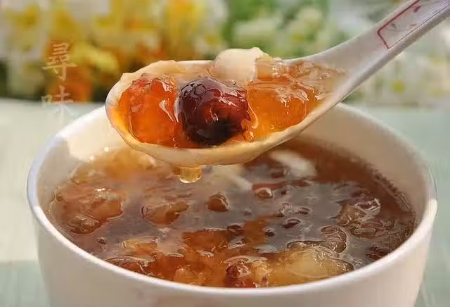 桃膠、銀耳、皂角米、百合、紅棗放入鍋內,加入適量清水,大火煮開後改小火煮1-1.5小時左右,直至粘稠。加入紅糖待融化即可。