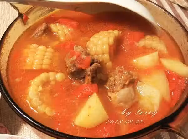 小排;番茄4隻;玉米1根;土豆1隻;鹽、糖