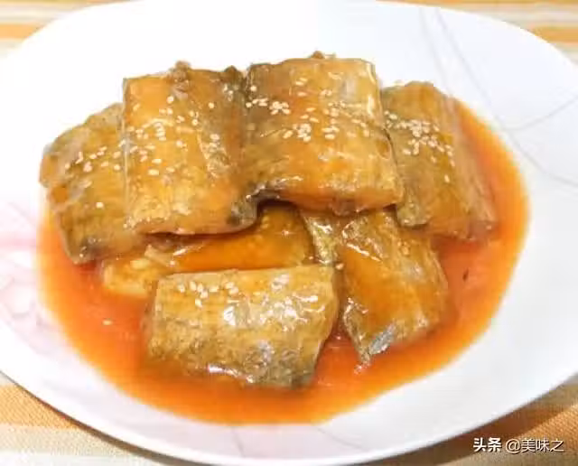 8、將做好的茄汁澆到炸好的帶魚上,最後可撒點白芝麻。