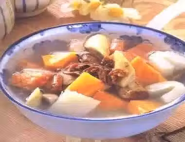 (3)水煮滾,加入所有材料,用大火煮十分鐘,在轉至文火煮半小時後,加入調味料即可飲用。