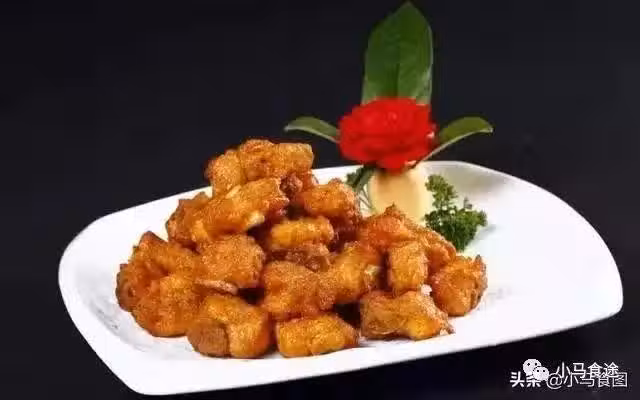 1.將豬大排敲松,去筋,沖水,瀝干水分,加入鹽、大蒜水、料酒、白糖、花生醬、味精腌制2小時待用;雞蛋液加生粉調成炸糊,將腌好的大排裹勻炸糊,入五成熱油溫炸至九成熟,撈出,入六成熱油溫炸至外皮酥脆,撈出瀝油,裝盤;