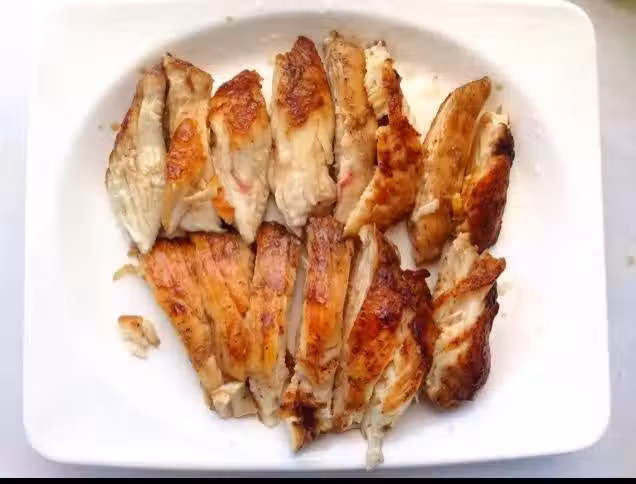 雞胸加入澱粉,生抽醬油,咸鹽,胡椒粉~