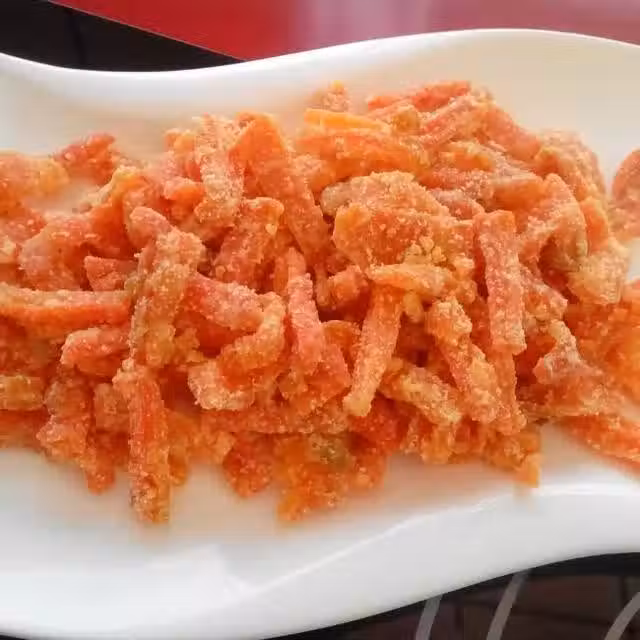 3、待看見胡蘿蔔亮亮的泛出糖油,翻動有粘稠狀不用急,繼續熬煮到鍋的四邊有糖沙出現,鍋離開灶具,撥涼即可。