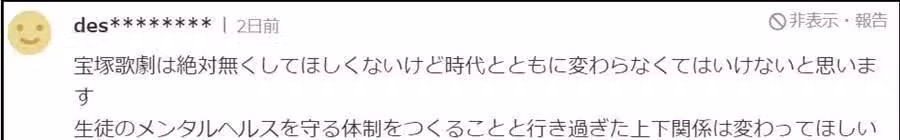 希望寶塚能健全保護學生身心健康的管理體制,改變過於嚴苛的上下階級關系。
