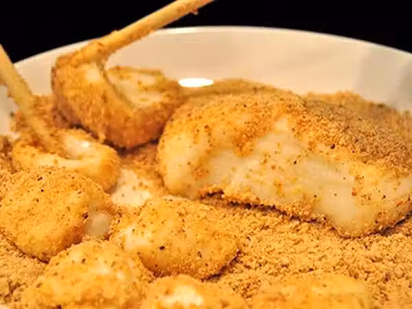 5、糯米糰分割成小塊,均勻沾裹花生糖粉/黑芝麻糖粉即可食用。