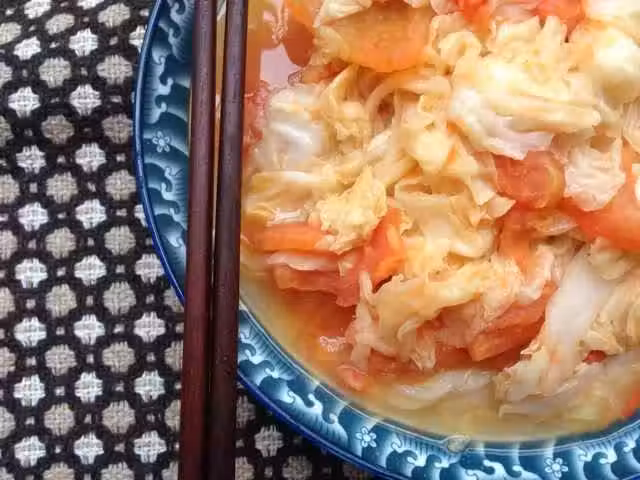西紅柿一個;大白菜適量;花生油