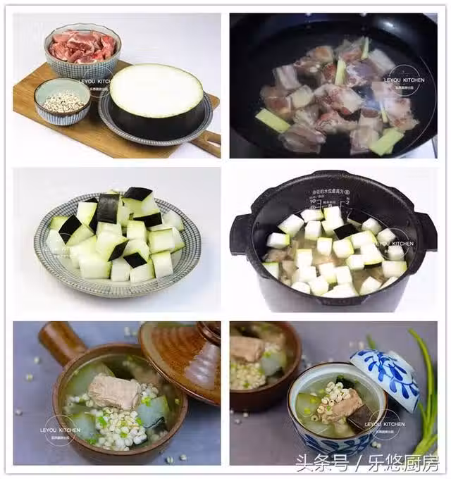 第四步:薏米淘洗乾淨,然後和冬瓜塊、排骨一起放到電飯鍋中,再倒入1500毫升的清水,蓋好鍋蓋燉1個小時。接下來,放入2勺鹽,再燉10分鐘即可。