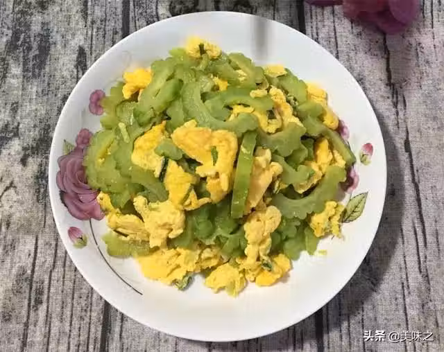 苦瓜一條、雞蛋三個、香蔥適量、稻米油適量、鹽適量、料酒適量、雞精少許。