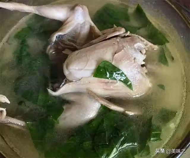 6、車前葉子切碎,放鵪鶉里,加食鹽,煮開幾十秒即可出鍋。