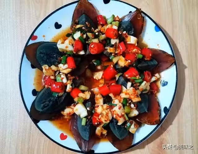 皮蛋2個、小米辣少許、蒜子少許、薑末少許、生抽2勺、香醋1勺、蚝油1勺、雞粉1勺、鹽1勺、油潑辣子1勺、小蔥少許。