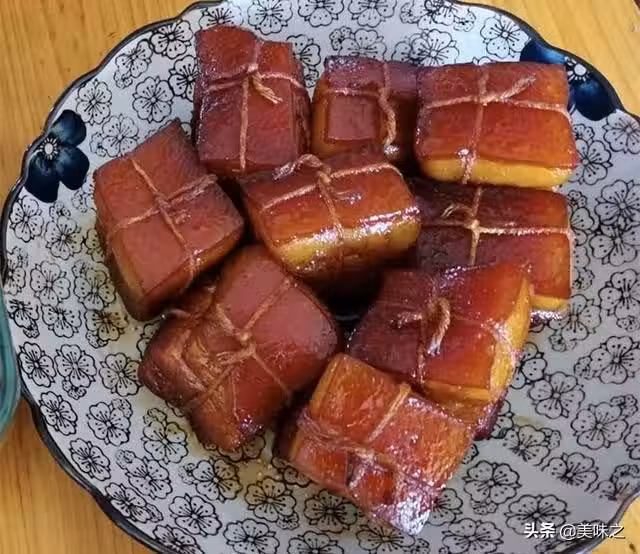 1、五花肉切塊一寸見方,焯水後用棉線綁好,砂鍋底部放薑片。