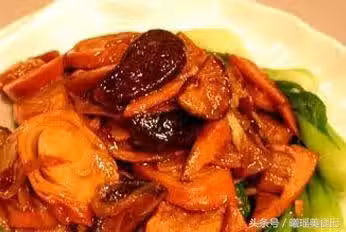 3、坐鍋點火倒油,下蔥姜蒜爆香,放入素雞、冬菇、春筍燒兩分鐘後調味勾芡出鍋澆在菜上即可