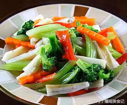 1、時蔬可以用任何蔬菜,只要是時令的就可以了。我這裡是山藥、蓮藕、芹菜、紅椒、胡蘿蔔、西蘭花