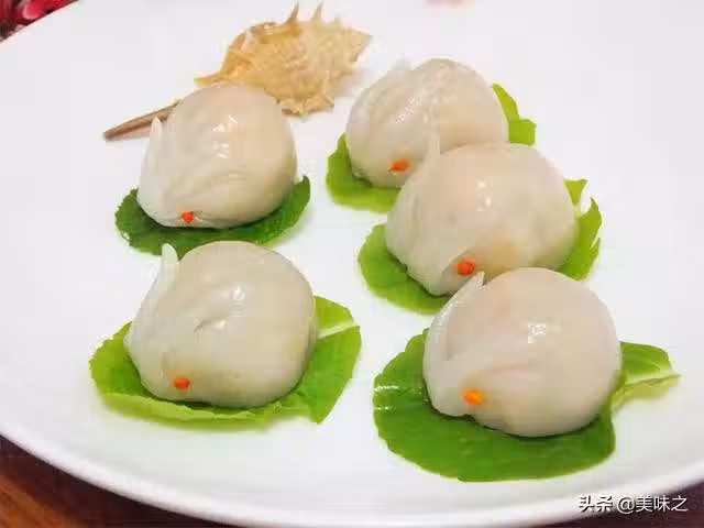 10、放入餡包好,用剪刀剪兩瓣,做出兔子的耳朵。