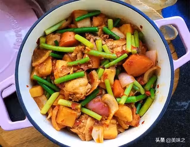 8、雞腿根八成熟加入土豆和胡蘿蔔塊繼續燉。