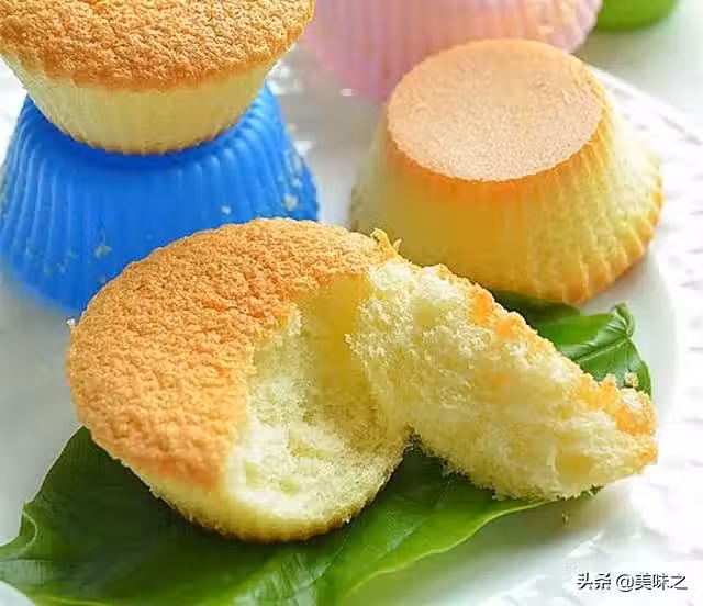 7、模具排好在烤盤上,分別倒入伴好的蛋糕糊,放入預熱好的烤箱中,中層上下火180°烤20分鐘左右即可。