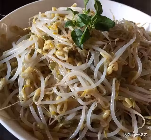 綠豆芽、大蒜、醋、油、鹽。