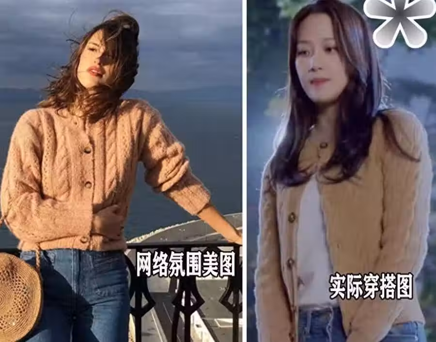 大家不要被網絡穿搭圖騙了,有一些很美很有氛圍感的粗麻花穿搭圖很上鏡。但效果圖和現實還是很有差距的,就連身材條件很優越的女明星們都曾敗在粗麻花奶奶衫上衣,我們還是盡量去選擇細密的坑條紋,替代麻花類款式的奶奶衫,最不容易出錯。