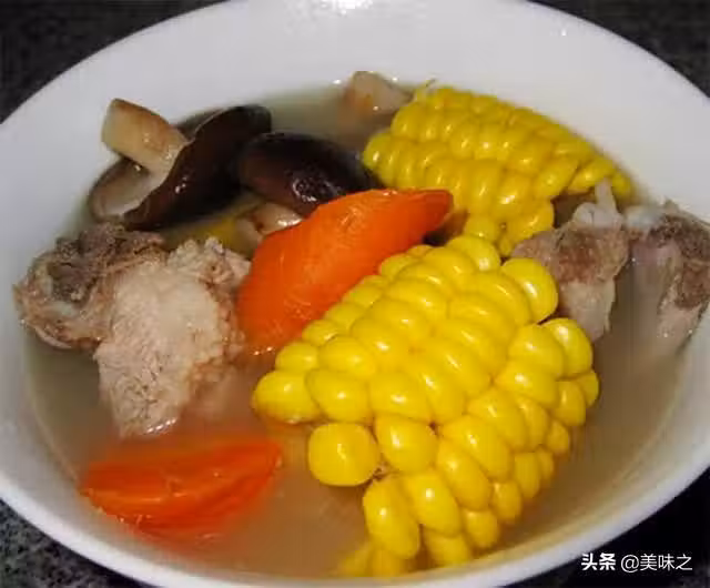 甜玉米一個、紅蘿蔔一個、鮮香菇150克、骨頭350克、生薑適量、鹽適量。
