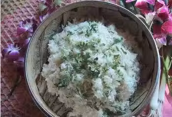 7、高壓鍋內膽里放提前泡好的糯米和粘米。