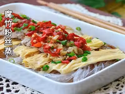 材料:腐竹, 粉絲,肉末,蒜,鹽,料酒,白鬍椒粉,剁椒,生 抽