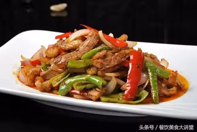 【材料】牛肉250g,澱粉30g,麵粉20g,嫩肉粉3g,蛋1個,青椒半個,紅椒半個,鹽3g,胡椒粉1g,雞精3g,薑汁水15g,料酒10g,姜蒜5g,油適量