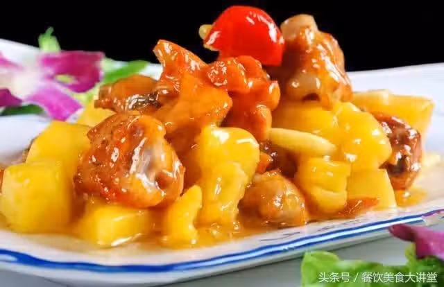 【材料】雞翅250g,菠蘿200g,紅椒半個,冰糖15g,老抽一小勺,鹽1/4小勺
