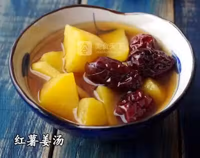 材料:紅薯 1個,老薑 1塊,紅棗 6顆,紅糖 50克