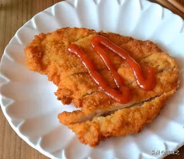 雞胸500克、麵包糠適量、番茄沙司適量、鹽適量、胡椒粉少許、玉米澱粉2勺、料酒2勺。