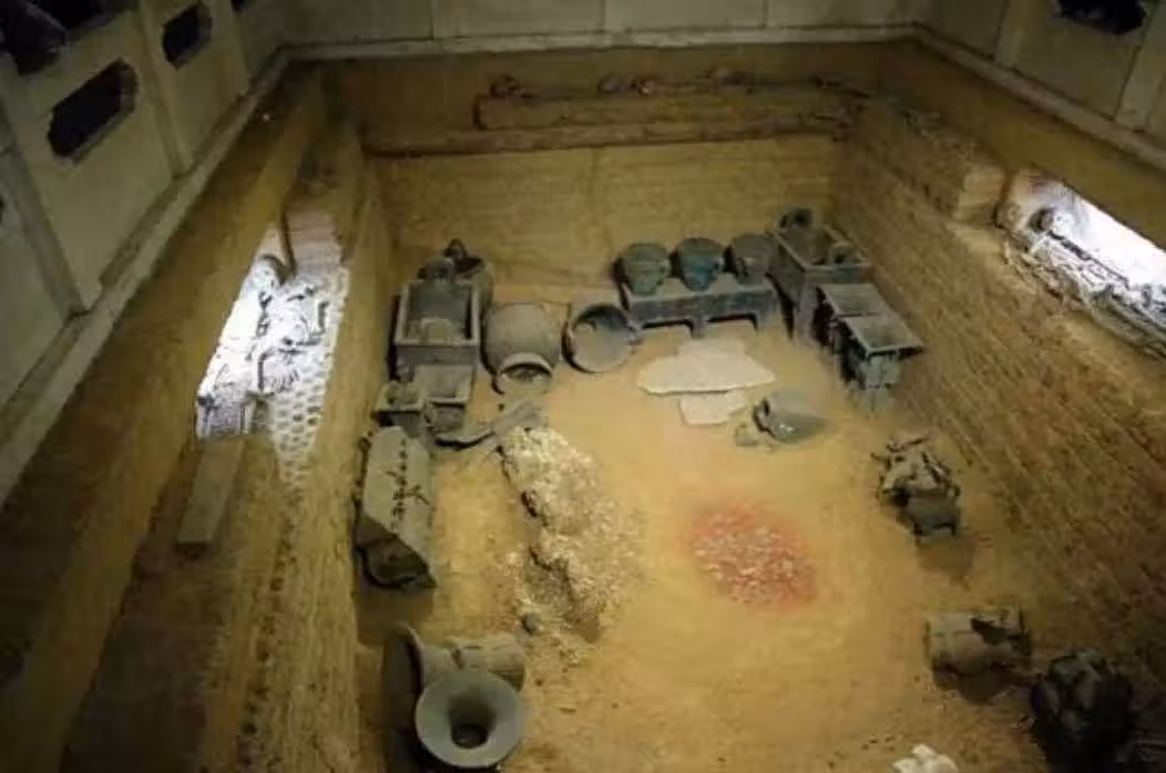 九層妖樓從上而下,每隔1米左右,便有一層排列整齊橫穿冢丘的穿木,共有9層之多,一律為粗細一般的柏木。考古人員僅發掘了墓葬一、二層,出土了大量陪葬物品和陪葬的馬、牛、羊等動物遺骸700餘具。這僅僅是九層妖樓中的極少一部分,剩下的7層,為了保護墓葬完整性,暫時不發掘,因為挖開之後,因為技術不成熟,很多珍貴文物接觸氧氣迅速遭到破壞。所以,我們現在的考古隊,已經全面禁止了主動挖掘墓葬的行為。
