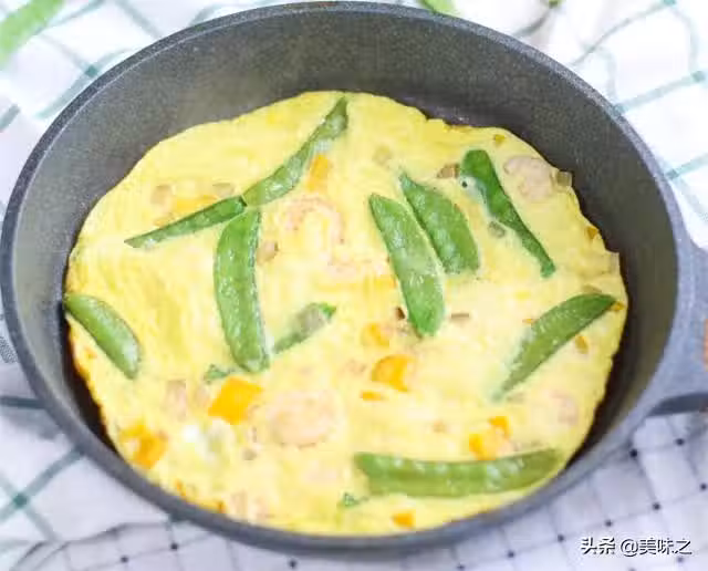 基圍蝦9個、荷蘭豆30克、黃椒1/3個、洋蔥1/4個、雞蛋3個、純牛奶50ml。