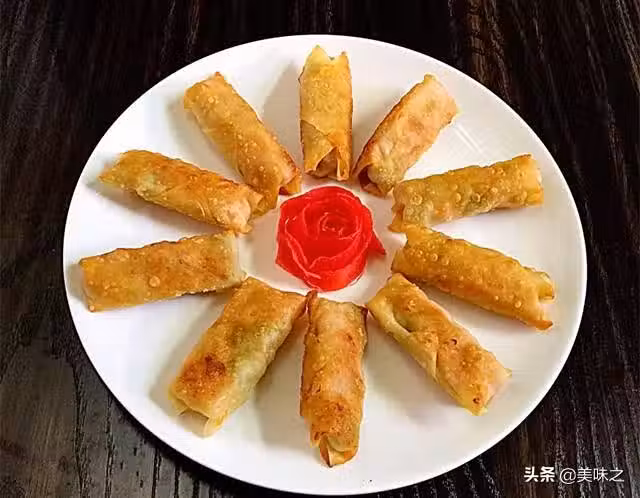 9、上鍋入適量油,用中小火將所有包好餡料的春卷煎至金黃色盛出。
