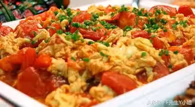 2、蛋液凝固成型後用鍋鏟劃拉散盛出備用,鍋洗乾淨重新倒油燒熱後倒入番茄煸炒。