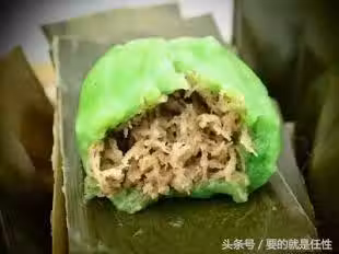 3.把餡料包入麵糰里,再用香蕉葉包起來.