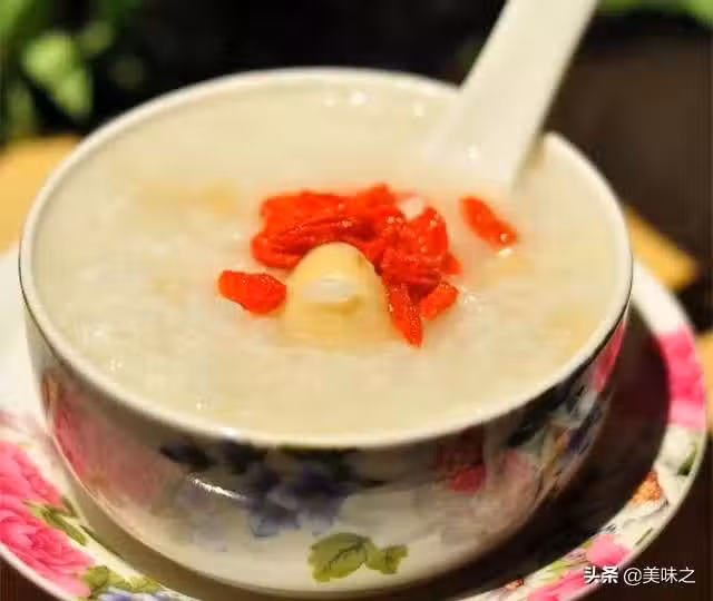 6、一兩個小時後開大火煮粥至粘稠後加入洗過的枸杞煮二分鐘。