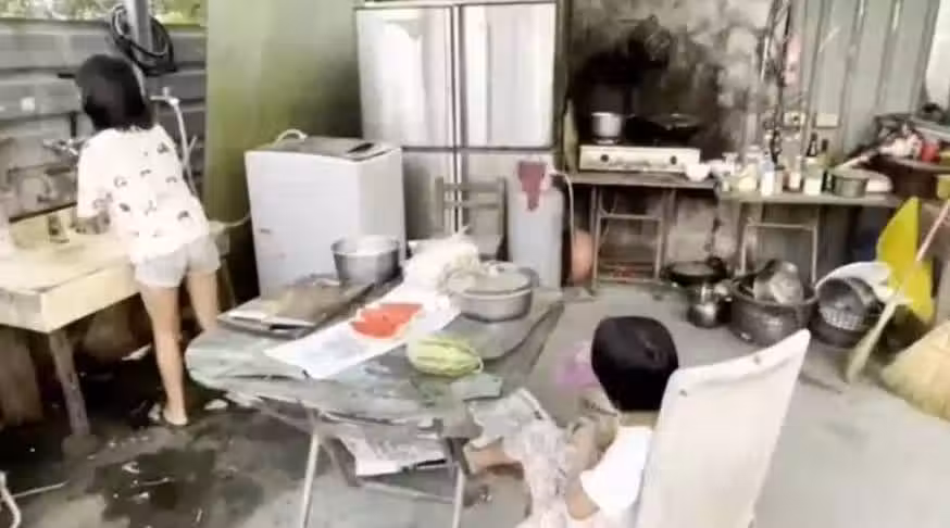 一走進去,就可以看見在狹小的廚房,一名年僅10歲的女童正在煮飯,動作相當熟練,煮完後她馬上餵只有4歲大的妹妹吃飯,接著她還要幫弟妹洗澡、處理家務,懂事的模樣讓人為之心疼。