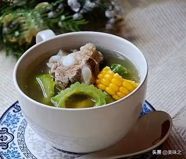 豬排骨500g、苦瓜1根、玉米1根、蔥姜適量、料酒15ml、大料2個、鹽適量、胡椒粉適量、雞精適量。