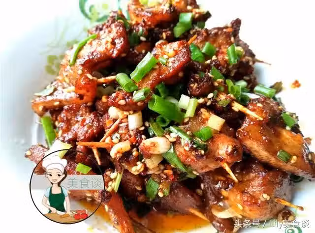 1、豬裡脊肉切成小塊,用牙籤穿好。
