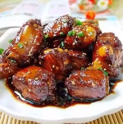 小排500g;料酒一湯匙;生抽一湯匙;老抽半湯匙;香醋三湯匙分兩次放;糖三湯匙;鹽半茶匙;味精少許;芝麻半茶匙